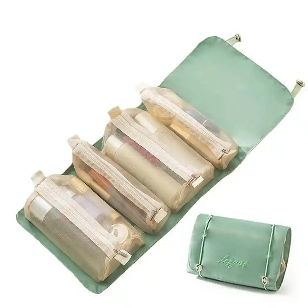 Este práctico neceser 4 en 1 cuenta con cuatro bolsas desmontables con cierre, permitiendo su uso individual o en conjunto para mayor versatilidad al viajar. Fabricado en nailon de alta calidad, es ligero, resistente al agua, al desgaste y fácil de limpiar, mientras que sus compartimentos de malla transparente facilitan la visualización y acceso a los cosméticos. Su diseño compacto ofrece un almacenamiento eficiente para productos de belleza, brochas, anteojos y artículos de cuidado personal, convirtiéndolo en el compañero ideal para cualquier viaje. Además, es un regalo perfecto para ocasiones especiales como Navidad, Año Nuevo o cumpleaños. Ficha Técnica: Dimensiones: 23 cm x 54.5 cm Material: Nylon - Poliester ** _Para defectos de fábrica o retractos: \_Por favor revise el producto apenas lo reciba y antes de usarlo. No aplican ley de retracto o defectos de fábrica luego de usar el producto. Se manejan máximo 5 días para reportar defectos de fábrica (por ejemplo, producto funciona mal, piezas faltantes, rotas, etc). Para hacer efectiva la devolución el producto debe devolverse con el empaque original, el cual debe estar en buen estado, incluir todos los documentos y las partes completas y sin daños.
