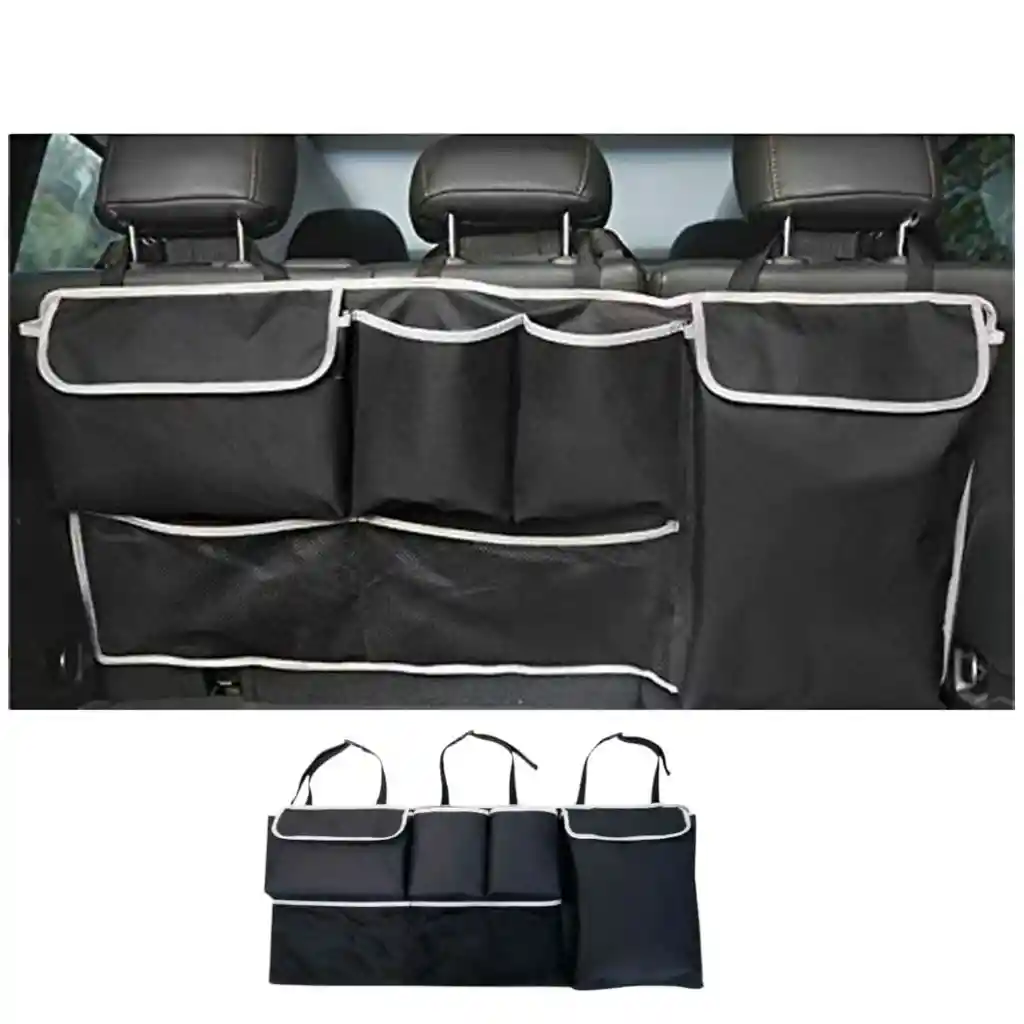 Deja el caos en el carro y evita que todas tus pertenencias,y herramientas se pierdan o dañen. Con este práctico organizador ya no estarán volando juguetes, botellas, empaques de comida, herramientas, etc. Está hecho en un material resistente y se adapta a cualquier tipo de silla por medio de sus correas ajustables. Características: * Material: Tela Oxford * Tamaño: 45 x 87 x 0.3 cm. * Peso: 185g * Tiene un total de 8 bolsillos, 4 bolsillos de red robustos hechos de red resistente en donde podrás guardar herramientas, juguetes, etc. 4 bolsillos Oxford en donde podrás organizar tus cosas pequeñas * Hecho de materiales respetuosos con el medio ambiente, tela Oxford 600D, saludable y segura. * 8 bolsillos de almacenamiento para guardar bocadillos, bebidas, botellas, libros, revistas, tabletas, bolígrafos, llaves, muñecos de peluche, casi todo para viajes largos por carretera y elementos esenciales de la rutina diaria.