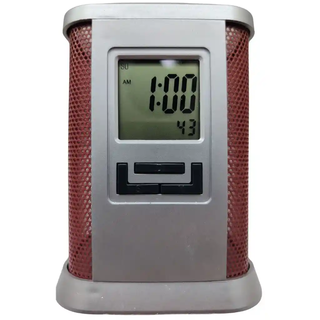 Práctico organizador de escritorio con reloj digital integrado, ideal para mantener tus esferos, lápices y accesorios siempre ordenados. Cuenta con pantalla LCD de fácil lectura que muestra la hora en formato digital, con indicador AM/PM y día de la semana. Su diseño moderno en color plateado con laterales perforados le da un aspecto elegante y funcional, perfecto para oficina, estudio o escritorio en casa. Ahorra espacio y mantiene todo al alcance de la mano. Características principales: Organizador de escritorio porta esferos Reloj digital con pantalla LCD Indicador de hora, AM/PM y día Diseño moderno y compacto Ideal para oficina, estudio o hogar Fácil de usar Contenido del paquete: 1 Organizador de escritorio con reloj digital Producto práctico y decorativo, ideal para mantener el escritorio ordenado y con estilo.