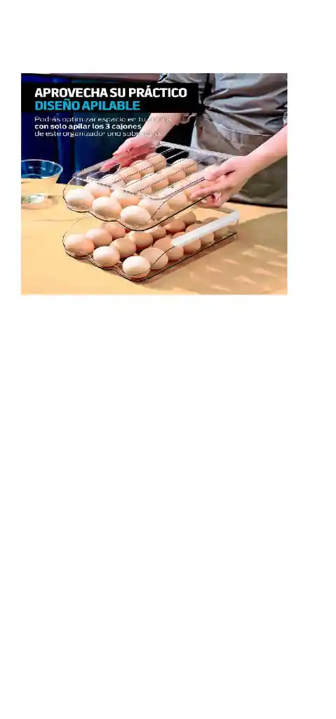 Diseño de rodamiento automático: el soporte para huevos adopta un diseño de pendiente suave, los huevos rodarán automáticamente hacia adelante lentamente para llenar, así que no te preocupes por que los huevos rueden demasiado rápido o se agrieten y sacarás los huevos fácilmente sin abrir la tapa Diseño apilable con tapa: cada capa de contenedor de huevos se fija con ranuras para tarjetas, que son fuertes y confiables, y se pueden apilar y almacenar con clips blancos. Puede almacenar artículos ligeros en la cubierta superior del organizador de huevos para ahorrar espacio, lo que hace que el refrigerador se vea tan elegante y limpio
