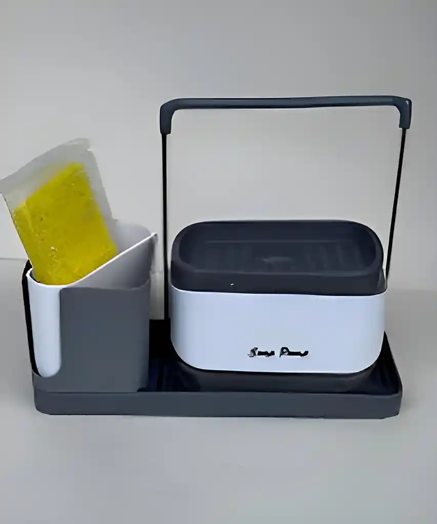Organizador de jabón de loza 3 en 1 ideal para mantener el lavaplatos limpio, ordenado y práctico. Cuenta con dispensador de jabón líquido con sistema de presión, espacio para esponja y base con drenaje que evita acumulación de agua. Fabricado en plástico resistente, fácil de limpiar y de diseño moderno. Perfecto para cocinas de cualquier tamaño, ahorra espacio y facilita el lavado diario de platos. ✔ Dispensador integrado ✔ Porta esponja incluido ✔ Bandeja con drenaje ✔ Resistente y práctico