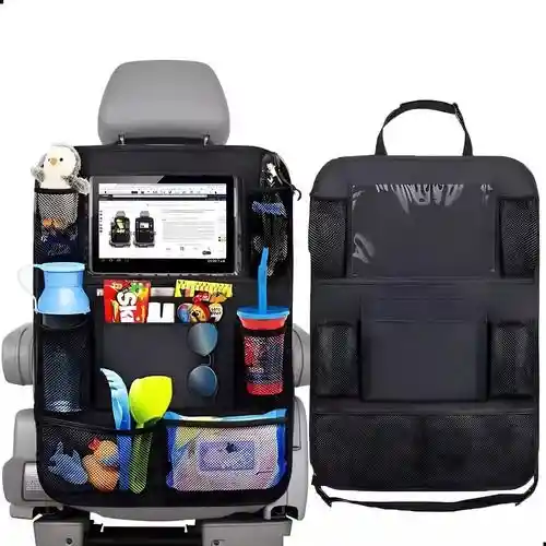 Organizador De Vehículo Carro Asiento Trasero Coche Bolsillo Tela: tela Oxford + malla + PVC ecológico De color negro Tamaño: 61*41,5 cm Escena aplicable: asientos de coche principal y copiloto (varios modelos) Características : -Gran capacidad -División multicapa -Almacenamiento y clasificación -Viaje ordenado -Mayor espacio -Instalación no destructiva -Práctico y práctico -Cerca del asiento del coche -No ocupa espacio -Fácil instalación