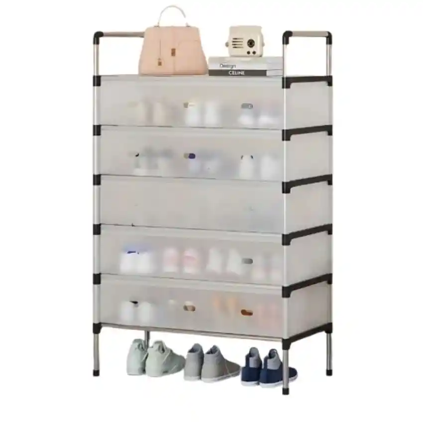 Organizador De Zapatos Metálico 6 Niveles Zapatero Con Tapa CARACTERISTICAS: * Organizador de zapatos metálico de 6 niveles con tapa * Estructura de metal de alta resistencia al peso, combinado de uniones plásticas. * Tiene capacidad de 12 hasta 18 pares de zapatos dependiendo del tamaño. * Este modelo destaca por su diseño armable, lo que facilita su montaje y adaptación a diferentes espacios, viene con cubierta para proteger del polvo. DESCRIPCION: - Organiza tu espacio con el Organizador de Zapatos Estante Zapatero Armable de 6 Niveles con Cubierta que lo protege del polvo y suciedad del ambiente. Este práctico zapatero es ideal para quienes buscan maximizar el almacenamiento en su hogar, ofreciendo una solución eficiente y elegante para mantener tus zapatos en orden. - Con cinco estantes, tendrás suficiente espacio para tus zapatos favoritos, desde zapatillas deportivas hasta tacones elegantes. - Hecho con láminas de aluminio y acrílicos, para dar mayor resistencia al peso, combinado de uniones plásticas, capacidad para 12 hasta 18 pares de zapatos de tallas para adulto y hasta 18 de tallas más pequeñas, fácil y rápido armado, ideal para organizar el closet y mantener los zapatos en buen estado cuando están guardados. - Cuidado producto: Realizar un mantenimiento periódico limpiando y secando el producto. La limpieza del producto se debe hacer únicamente con un paño suave. Nunca utilice abrasivos, esponjillas o elementos que puedan rayar la superficie del producto. ESPECIFICACIONES: * Material: ABS/ Varillas Aluminio. * Medidas: 66x29x110 cm.