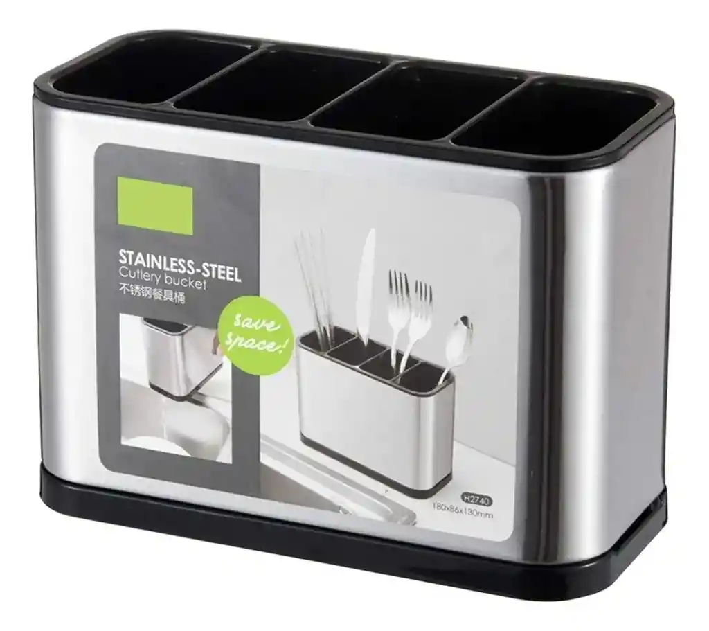 Este elegante organizador y escurridor de cubiertos es la solución definitiva para mantener tu cocina impecable y tus utensilios siempre a mano. Fabricado con un cuerpo de acero inoxidable de alta calidad y una base robusta, cuenta con un diseño inteligente de 4 compartimentos internos extraíbles que permiten clasificar cucharas, tenedores, cuchillos y palillos de forma higiénica. Su sistema incluye una base de drenaje que evita la acumulación de agua y la formación de bacterias, facilitando un secado rápido y una limpieza sencilla; es el accesorio compacto y duradero ideal para optimizar el espacio en tu encimera con un toque de sofisticación minimalista. Ficha Técnica del Producto Tipo de producto Organizador / Escurridor de cubiertos Material del cuerpo Acero Inoxidable de grado alimenticio Material de la base/interior Polipropileno (PP) de alta resistencia Número de cavidades 4 compartimentos independientes Dimensiones Totales 18 cm (Largo) x 8.6 cm (Ancho) x 13 cm (Alto) Color Plata (Chrome) con detalles en Negro Características Especiales Base antideslizante, removible para fácil limpieza Uso recomendado Cocina, encimeras, organización de mesa Drenaje Sistema de orificios internos para evitar humedad Referencia: PRLA-668 Términos de garantía: Para defectos de fábrica o retractos: Por favor revise el producto apenas lo reciba y antes de usarlo. No aplican ley de retracto o defectos de fábrica luego de usar el producto. Se manejan máximo 5 días para reportar defectos de fábrica (por ejemplo, producto funciona mal, piezas faltantes, rotas, etc). Para hacer efectiva la devolución el producto debe devolverse con el empaque original, el cual debe estar en buen estado, incluir todos los documentos y las partes completas y sin daños.