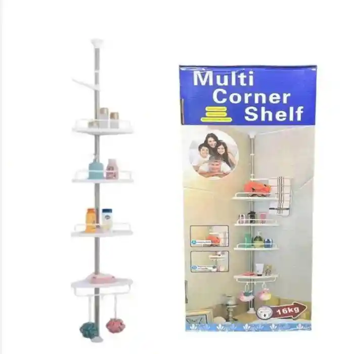 🧴 Estantería Esquinera Multiuso Ajustable – Multi Corner Shelf Organiza tu baño, cocina o lavandería de forma práctica y elegante con esta estantería esquinera multiuso de presión, diseñada para aprovechar al máximo los espacios verticales. ✨ Características principales: Instalación sin taladros: sistema de presión ajustable del piso al techo. Altura regulable: se adapta fácilmente a diferentes alturas de techo. 4 repisas resistentes con barandas de seguridad para evitar caídas. Material duradero: estructura metálica con repisas plásticas de alta resistencia. Diseño esquinero: ideal para baños, duchas, cocinas o zonas de lavado. Capacidad de carga: soporta hasta 16 kg distribuidos. Incluye ganchos inferiores para colgar esponjas, toallas o accesorios. 🏠 Usos recomendados: Organización de shampoo, cremas y productos de baño. Almacenamiento de artículos de limpieza. Accesorios de cocina o lavandería. 🎨 Color: Blanco con tubo metálico cromado (según imagen). 📦 Contenido del paquete: 1 estantería esquinera ajustable Repisas desmontables Accesorios de instalación