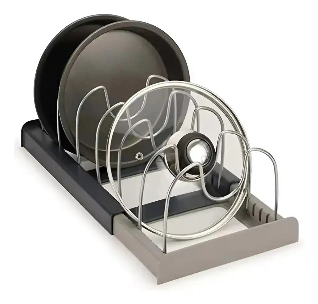 Optimiza el espacio de tus muebles de cocina con este versátil organizador extensible, diseñado para adaptarse perfectamente a tus necesidades de almacenamiento. Su estructura ajustable permite expandir el marco desde los 30.5 cm hasta los 56 cm, ofreciendo una solución flexible para gabinetes de diversos tamaños. Fabricado con una base de material ABS resistente y 7 separadores de acero inoxidable de alta calidad, este soporte garantiza durabilidad y protección contra el óxido. Cada divisor cuenta con una ranura especial para las asas de las ollas o pomos de las tapas, permitiendo un acceso rápido y evitando que tus utensilios se rayen al estar apilados. Es la herramienta definitiva para mantener tus sartenes, bandejas de hornear y tapas organizadas, visibles y siempre a la mano. FICHA TÉCNICA DEL PRODUCTO Producto: Organizador extensible para utensilios de cocina Material de la base: Plástico ABS rígido y antideslizante Material de los divisores: Acero inoxidable (no se oxida) Longitud mínima: 30.5 cm (12 pulgadas) Longitud máxima: 56 cm (22 pulgadas) Ancho: 20.4 cm (8 pulgadas) Alto: 14.7 cm (5.75 pulgadas) Número de divisores incluidos: 7 unidades ajustables Compatibilidad: Ollas, sartenes, tapas, bandejas de horno y moldes Características especiales: Divisores antiarañazos con ranuras para asas, instalación sin herramientas Cuidado y limpieza: Limpiar con un paño húmedo (no usar abrasivos) POLÍTICAS DE GARANTÍA El producto cuenta con una garantía de 30 días calendario por defectos de fabricación, materiales defectuosos o fallas en el mecanismo de extensión bajo condiciones de uso normal en el hogar. La garantía no cubre daños derivados de una mala manipulación, caídas, exposición a químicos corrosivos, o el uso de fuerza excesiva al ajustar los separadores; para tramitar cualquier solicitud, el comprador deberá presentar el producto completo en su empaque original y en buen estado físico.