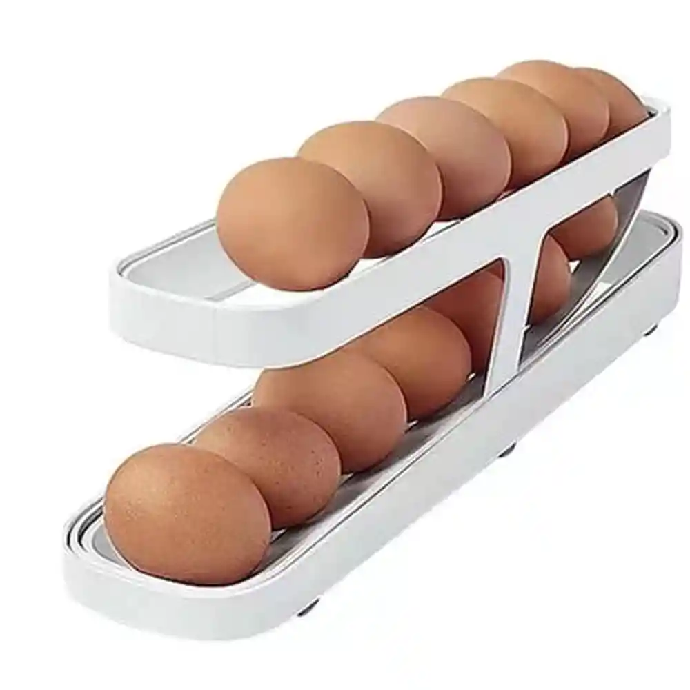 Porta huevos y dispensador automático que funciona con la gravedad del planeta, ocupa poco espacio en la nevera y puede almacenar de 12 a 14 huevos tamaño medio o jumbo. BENEFICIOS: - Fácil uso, funciona como porta huevos y dispensador de huevos automático. - Ocupa poco espacio en la nevera. - Fácil de limpiar y usar. - Organiza, agiliza y embellece la forma de guardar tus huevos. CARACTERÍSTICAS: - Puede almacenar de 12 a 14 huevos tamaño medio o jumbo. - Material de plástico ligero y resistente. - Medidas plantillas: 36cm (L) x 10,5cm (Al) x 8,2cm (An) (Medidas aproximadas). - Peso: 272 gr (Medidas aproximadas). FUNCIONAMIENTO: Arme el dispensado de forma fácil con las ranuras que tiene, toma como referencia la imagen del dispensador ya armardo, coloqué los huevos en posición horizontal (rodante), y listo.
