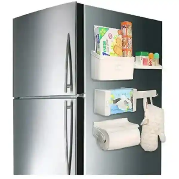 Set de organizadores multifuncionales para refrigerador, ideal para optimizar el espacio y mantener todo en orden. Incluye 5 piezas: repisas, ganchos y porta rollos, perfectos para guardar servilletas, bolsas, utensilios pequeños y accesorios de cocina. Fabricado en plástico resistente, de fácil instalación (adhesivo o ganchos, según modelo), sin necesidad de perforar. Ideal para refrigerador, cocina, despensa o lavandería. ✅ Ahorra espacio ✅ Fácil instalación ✅ Diseño minimalista y funcional ✅ Ideal para refrigerador y cocina