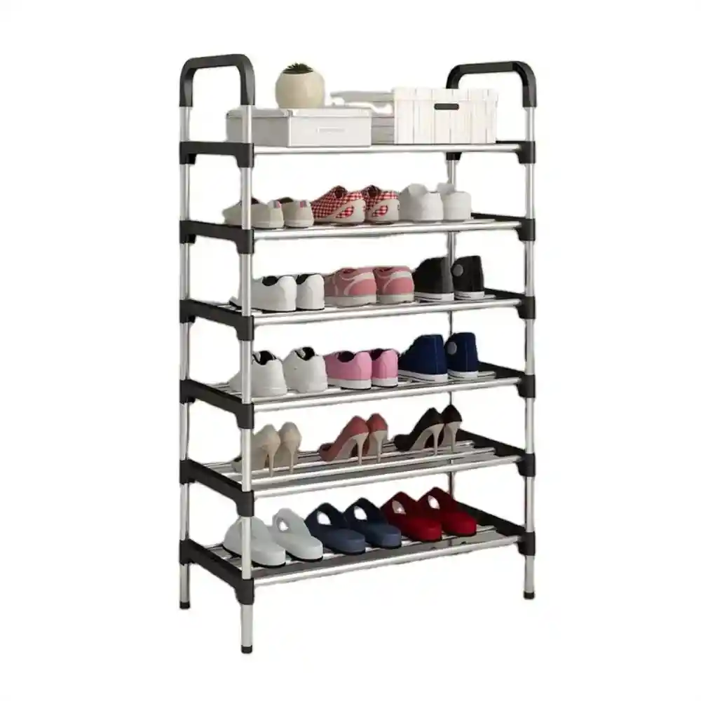 Diseño de 6 niveles que permite almacenar gran cantidad de calzado. Estructura hecha con láminas de aluminio, brindando mayor resistencia al peso. Uniones plásticas duraderas que facilitan el armado y la estabilidad. Fácil mantenimiento: solo requiere limpieza con un paño suave, sin abrasivos. Versátil y funcional, ideal para dormitorios, pasillos o closets.
