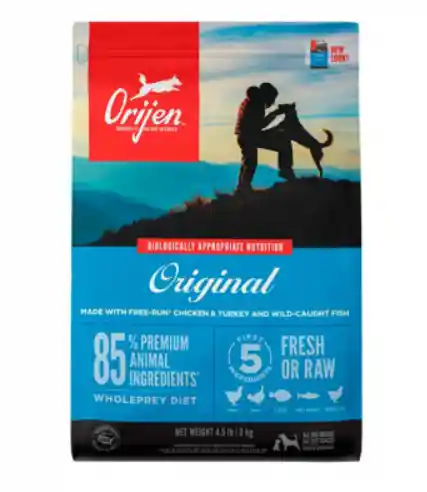Orijen Original es una comida para perros de todas las razas en cualquier etapa de su vida. Se realiza con una deliciosa mezcla de 5 proteínas saludables: pollo, pavo, huevos, arenque y lenguado; que brindan todos las vitaminas y minerales para que tu peludo este sano y feliz. Este alimento para perros se realiza con 2/3 de proteína fresca y 1/3 de proteína deshidratada para aportar diferentes tipos de nutrientes. Se le añaden infusiones de hígado de pavo y pollo con el fin de mejorar el sabor.