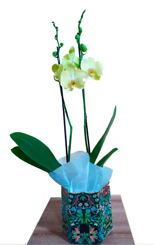 Orquídea de dos Varas Amarilla empacada para regalo Orquidea de color Amarilla con Matera decorativa Si, de 2 espigas , Orquídea de dos Varas Amarilla empacada para regalo Orquidea de color Amarilla con Matera decorativa Si, de 2 espigas