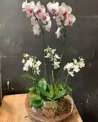 Hermosa orquídea arreglada en boul o recipiente de vidrio, ideal para dar un detalle único, siempre son orquídeas de colores exóticos, requiere un riego especifico así que escríbenos recuerda que tenemos asesoría 24/7, imágenes de referencia los colores pueden variar.