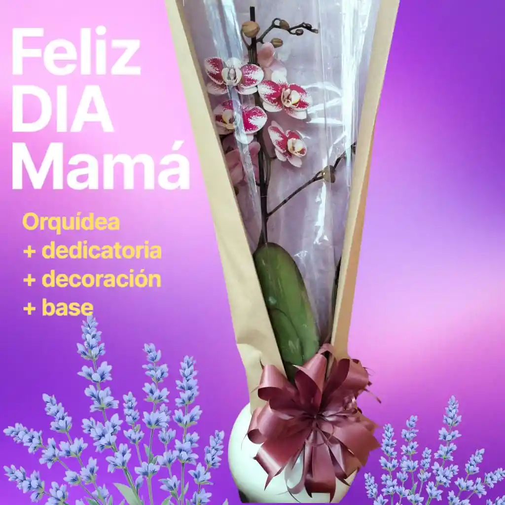 orquídea de una vara floral color aleatorio + matera en cerámica + decoración y tarjeta (escribir el mensaje en el chat)