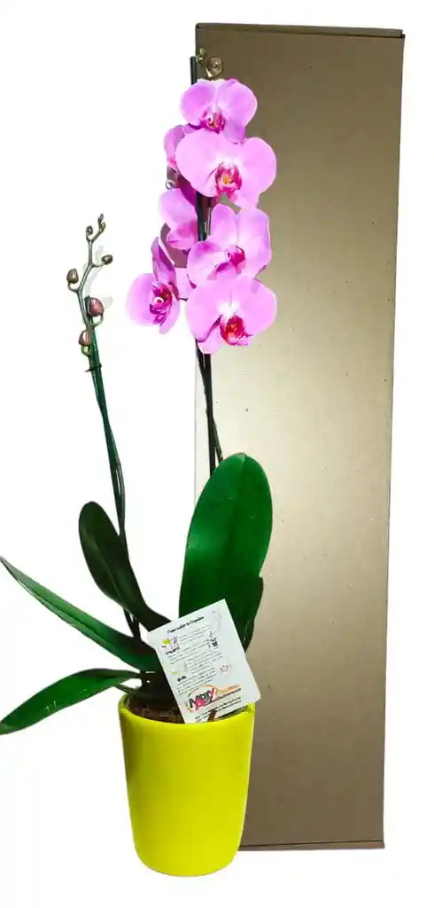 Orquidea Grande 2 Varas con hermosas flores y algunas con varios botones. bellos y calidos colores. miden aproximadamente de 50 a 65 centimentros de alto en matera Ceramica. tienen un tiempo de afloracion de 2 a 3 meses. si desea vienen con tarjeta para dedicatorias y tarjeta de cuidados y su caja idela para regalos. Detalle elegante y delicado. regala amor. regala vida y regala una orquidea NOTA: Los colores pueden variar de acuerdo a la disponibilidad del momento
