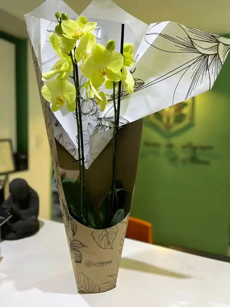 Orquídea Grande De Dos Varas flores amarillas Orquídea Grande de Dos Varas – Flores Amarillas Elegante y luminosa orquídea grande de dos varas, con hermosas flores amarillas que transmiten alegría, armonía y sofisticación. Cada vara cuenta con múltiples flores y botones, garantizando una floración vistosa y duradera. Incluye maceta blanca de plástico y viene en una presentación especial para regalo, cuidadosamente envuelta, ideal para sorprender en cumpleaños, aniversarios, agradecimientos o como un detalle especial para el hogar u oficina. Una planta de fácil cuidado que aporta un toque natural y elegante a cualquier espacio. Características: Orquídea Phalaenopsis de gran tamaño Dos varas florales Flores color amarillo Maceta blanca de plástico incluida Presentación lista para regalo