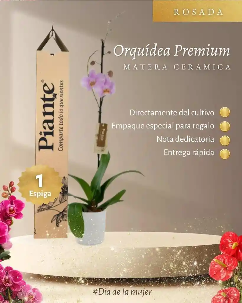 Dale un toque especial a cualquier espacio con nuestra Orquídea Premium, una planta elegante, delicada y perfecta para decorar salas, oficinas, escritorios o sorprender con un regalo lleno de vida. 💐 Flores exóticas y sofisticadas. 🌿 Tamaño ideal para cualquier ambiente. ✨ Seleccionadas cuidadosamente para garantizar frescura y excelente presentación. El color puede variar según el estado de floración, haciendo que cada planta sea única. Podrás recibir tonalidades blancas, rosadas, fucsias, amarillas o combinaciones naturales, según disponibilidad y proceso natural de la flor. 📸 La fotografía es imagen de referencia. El color puede variar según disponibilidad y etapa de floración. 🌺 Un detalle hermoso, natural y lleno de elegancia.