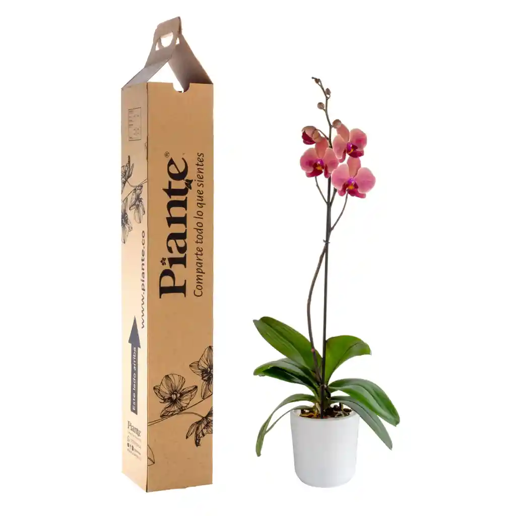 Descubre la elegancia con nuestra Orquídea Premium, cuidadosamente cultivada para garantizar una altura mínima de 55 cm y una vara floral. Ideal para celebrar logros, agradecer gestos o embellecer espacios, esta orquídea promete encantar con su ciclo de floración inicial de 3 a 4 meses. Se entrega en una caja de transporte diseñada para su perfecta conservación y una nota personalizable, ideal para mensajes especiales. Cada planta, con su forma y estructura delicadas, puede florecer hasta dos veces al año y durar hasta tres años siguiendo nuestras recomendaciones de cuidado. Dado que es una planta viva, el color de las flores puede variar, haciendo de cada Orquídea Premium una pieza única.