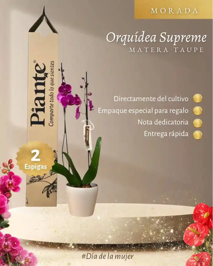Dale un toque especial a cualquier espacio con nuestra Orquídea Supreme, una planta elegante, delicada y perfecta para decorar salas, oficinas, escritorios o sorprender con un regalo lleno de vida. 💐 Flores exóticas y sofisticadas. 🌿 Tamaño ideal para cualquier ambiente. ✨ Seleccionadas cuidadosamente para garantizar frescura y excelente presentación. El color puede variar según el estado de floración, haciendo que cada planta sea única. Podrás recibir tonalidades blancas, rosadas, fucsias, amarillas o combinaciones naturales, según disponibilidad y proceso natural de la flor. 📸 La fotografía es imagen de referencia. El color puede variar según disponibilidad y etapa de floración. 🌺 Un detalle hermoso, natural y lleno de elegancia.