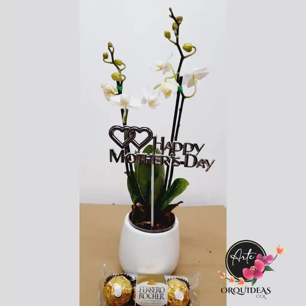 Sal de lo tradicional y sorprende con un regalo único, lleno de vida y amor. Sorprende con @Arteorquideascol De la Orquídea: Tipo: Phalaenopsis Altura Promedio: 10 a 20 cm Matera: Plástica transparente de Cultivo. Porta matera: hermosa variedad de materos en cerámica en colores a elegir blanco o metalizados. Floración: en Promedio de 2 a 6 meses, si sigues nuestras indicaciones de cuidado. Te la entregamos con: Empaque de regalo, moño, tarjeta personalizada con tu mensaje especial y guía de cuidados. Notas Importantes: Con tu compra te garantizamos una orquídea fresca, que tenga botones y Flores en proporción justa, para que vivas la experiencia de verla florecer y así tu planta dure más. La gama de este color puede cambiar de acuerdo a la disponibilidad de inventario. Orquidea de color Blanco con Matera decorativa Si, de 2 espigas