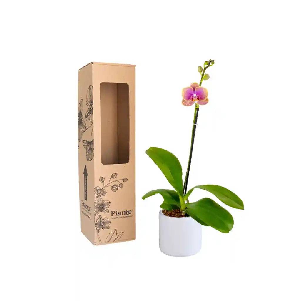 Celebra la belleza suprema con nuestra Orquídea mini premium. Esta orquídea cuenta con un promedio de altura entre 15 y 20 cm, directamente del cultivo, es perfecta para expresar felicitaciones, agradecimientos o dar un toque de armonía al hogar. Su periodo de floración de 1 a 2 meses la primera vez asegura meses de belleza. Incluye caja de transporte especial y nota dedicatoria. Además, cuenta con 1 varas o espigas florales.