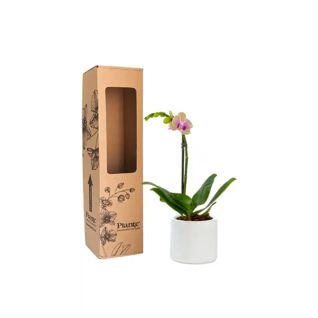 Celebra la belleza suprema con nuestra Orquídea mini premium. Esta orquídea cuenta con un promedio de altura entre 15 y 20 cm, directamente del cultivo, es perfecta para expresar felicitaciones, agradecimientos o dar un toque de armonía al hogar. Su periodo de floración de 1 a 2 meses la primera vez asegura meses de belleza. Incluye caja de transporte especial y nota dedicatoria. Además, cuenta con 1 varas o espigas florales.