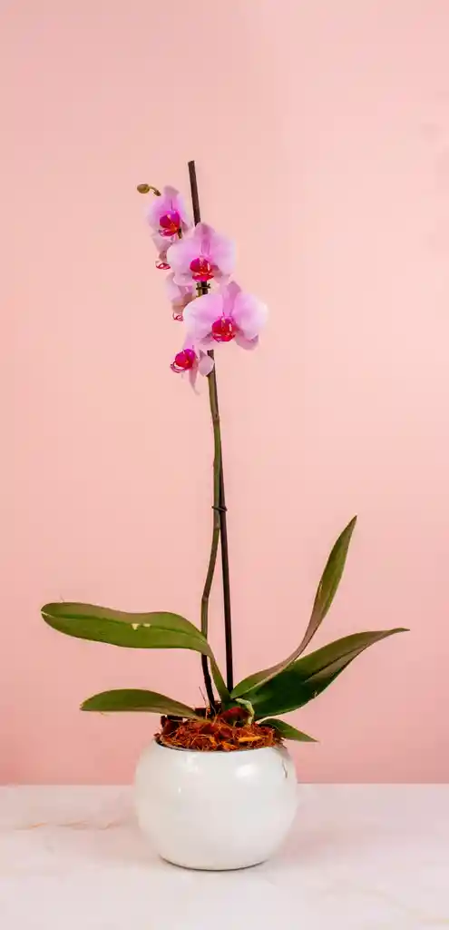 Esta cautivadora orquídea Phalaenopsis viene incluida con una matera que viene sujeta a disponibilidad, despliega una vara floral elegante de la que emergen flores de una belleza singular. Sus pétalos exhiben un fascinante patrón moteado en tonos lavanda y púrpura, salpicados sobre un fondo más claro, a menudo blanco o crema, creando un efecto visual único y sofisticado. Con sus hojas verdes y robustas en la base, esta orquídea no solo es un símbolo de gracia, sino también una pieza de conversación perfecta para cualquier ambiente interior, aportando un toque de color y un diseño natural que deleitará la vista durante semanas. Al momento de la compra le ofrecemos al cliente una ficha técnica con los cuidados de la planta.