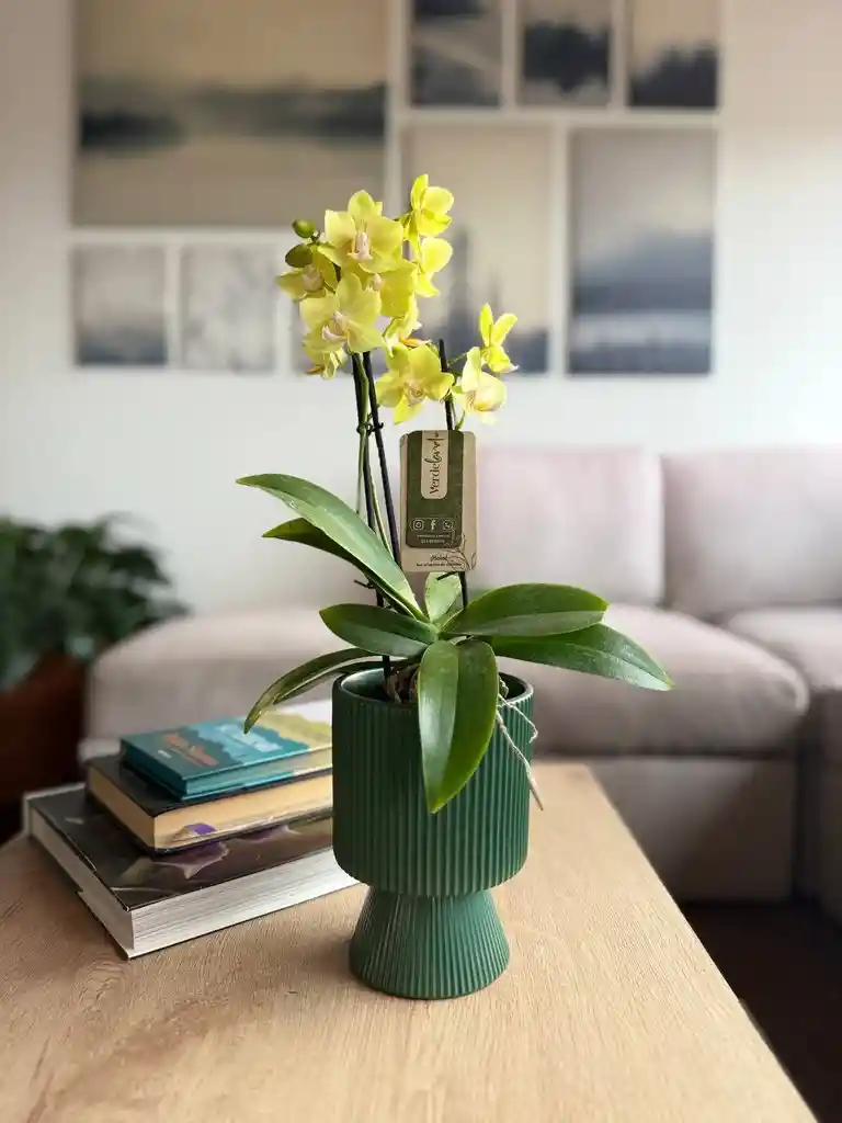 Esta elegante Orquídea Phalaenopsis multiflora es una pieza viva que transforma cualquier espacio con su delicadeza y color. Con una altura aproximada de 30 a 40 cm, su tamaño es ideal para mesas, escritorios o rincones especiales del hogar u oficina. Sus múltiples flores en tonos suaves aportan armonía y sofisticación, mientras que su matera en cerámica le da un acabado moderno y decorativo que combina fácilmente con distintos estilos. Incluye: Matera en cerámica Caja de presentación Tarjeta de cuidados Dedicatoria personalizada