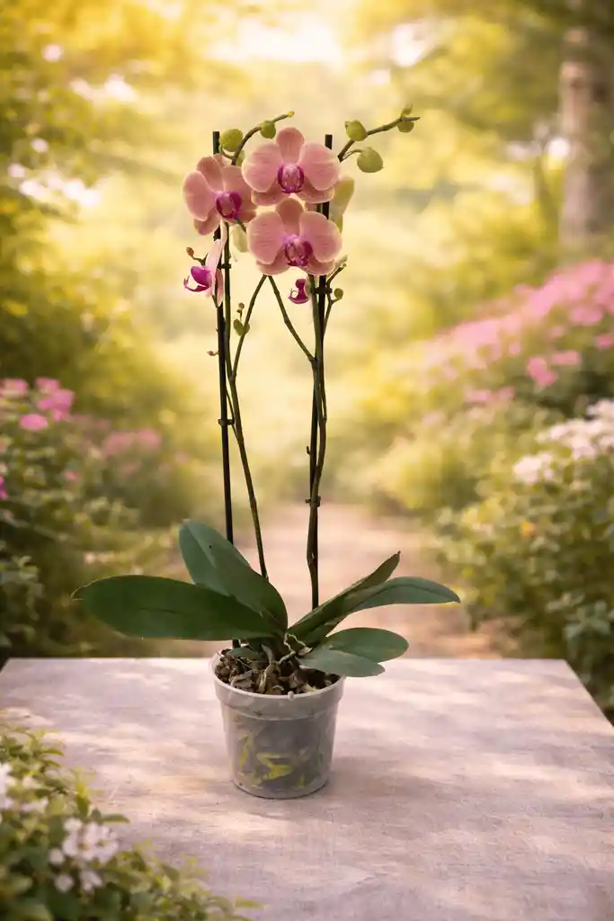 Sorprende con la elegancia y delicadeza de esta hermosa orquídea Phalaenopsis, una planta exótica que destaca por sus flores en tonos suaves rosados con detalles vibrantes en el centro. Su presentación en matera transparente permite apreciar sus raíces naturales, aportando un toque moderno y sofisticado. Perfecta para decorar espacios interiores o como un regalo especial lleno de significado, belleza y armonía. ✨ Incluye: Orquídea natural Phalaenopsis Matera transparente con sustrato especial Soporte para sus tallos florales 💧 Cuidados básicos: Ubicar en luz indirecta Riego moderado (1 vez por semana aproximadamente) Evitar encharcamientos 🎁 Ideal para regalar en ocasiones especiales, decorar el hogar o dar un toque elegante a oficinas.