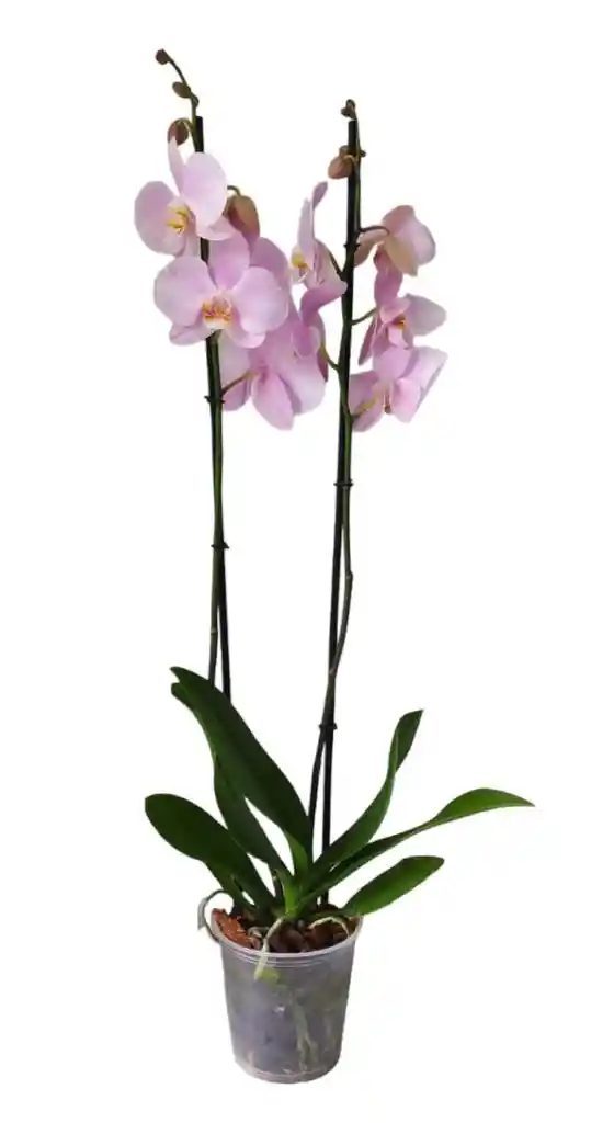 Orquídea Phalaenopsis planta viva, de dos espiga con floración, Altura de 70cm aproximadamente, entre 16 y 30 flores, duración de la flor promedio de 3 a 5 meses. Esta es una planta de interiores de riego 1 vez por semana. Ideal para regalar, decorar.