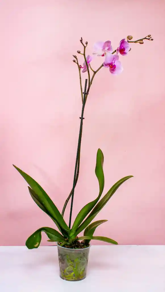 Una muestra de elegancia minimalista. Nuestra Orquídea Phalaenopsis de una sola vara es perfecta para hacer un regalo sofisticado o para iniciar tu colección de plantas. Su vara floral erguida y sus grandes flores aportan un toque de paz y distinción a cualquier espacio. Es fácil de cuidar, duradera y una verdadera declaración de belleza. Presentación: Planta viva en maceta transparente con una vara floral. Elegancia: Ideal para mesas de centro, escritorios o espacios reducidos.