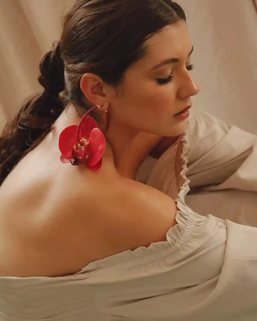 "Atalí Jewelry, marca de Diseño de Colombia inspirada en la belleza de la naturaleza y en el encanto de sus flores. Piezas elaboradas bajo un proceso artesanal por manos delicadas de mujeres del Atlántico Colombiano. Cada una de ellas afirma su originalidad y busca cautivar miradas con su espíritu exuberante. Diseñadas para una mujer vanguardista que busca equilibrar el encanto moderno con la esencia del arte. Para la elaboración de las piezas se utilizan estos Materiales: Topos Orchids: Flor en tafeta con detalles en cristales de murano y terminaciones en alambre con baño de oro. Dimensiones: Minis: 6 cm de largo x 6 de ancho. Peso 20g."