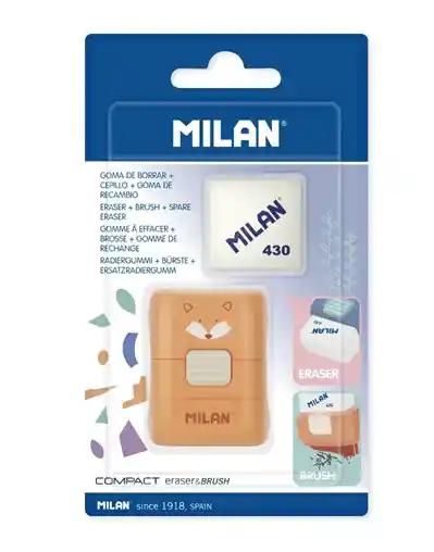 Color aleatorio: azul, naranja y rosa. Combinación de goma de borrar con cepillo eraser&brush. Goma de borrar 430 con cepillo para limpiar las virutas tras el borrado. Incluye una goma de recambio.