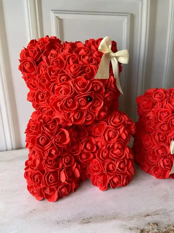 Caja acetato 23x23x30 Oso 30cm Flores foamy
