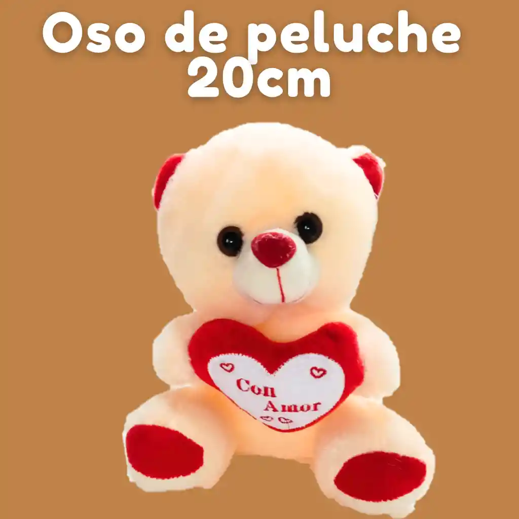 Oso de peluche de 20 cm. Incluye empaque con papel celofán, papel globo, moño y tarjeta