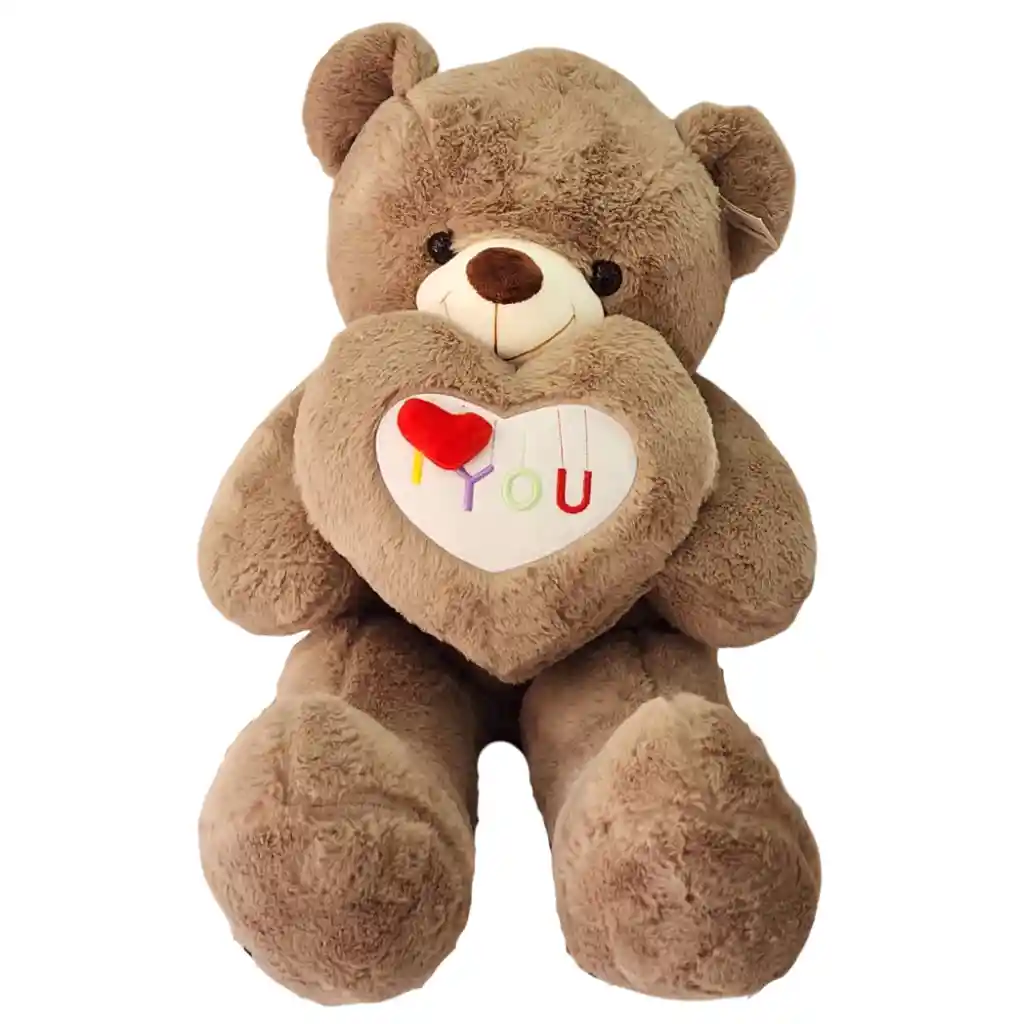 Hermoso oso de peluche café con corazón en las manos, mide aproximadamente 80cm. Perfecto para toda ocasión.