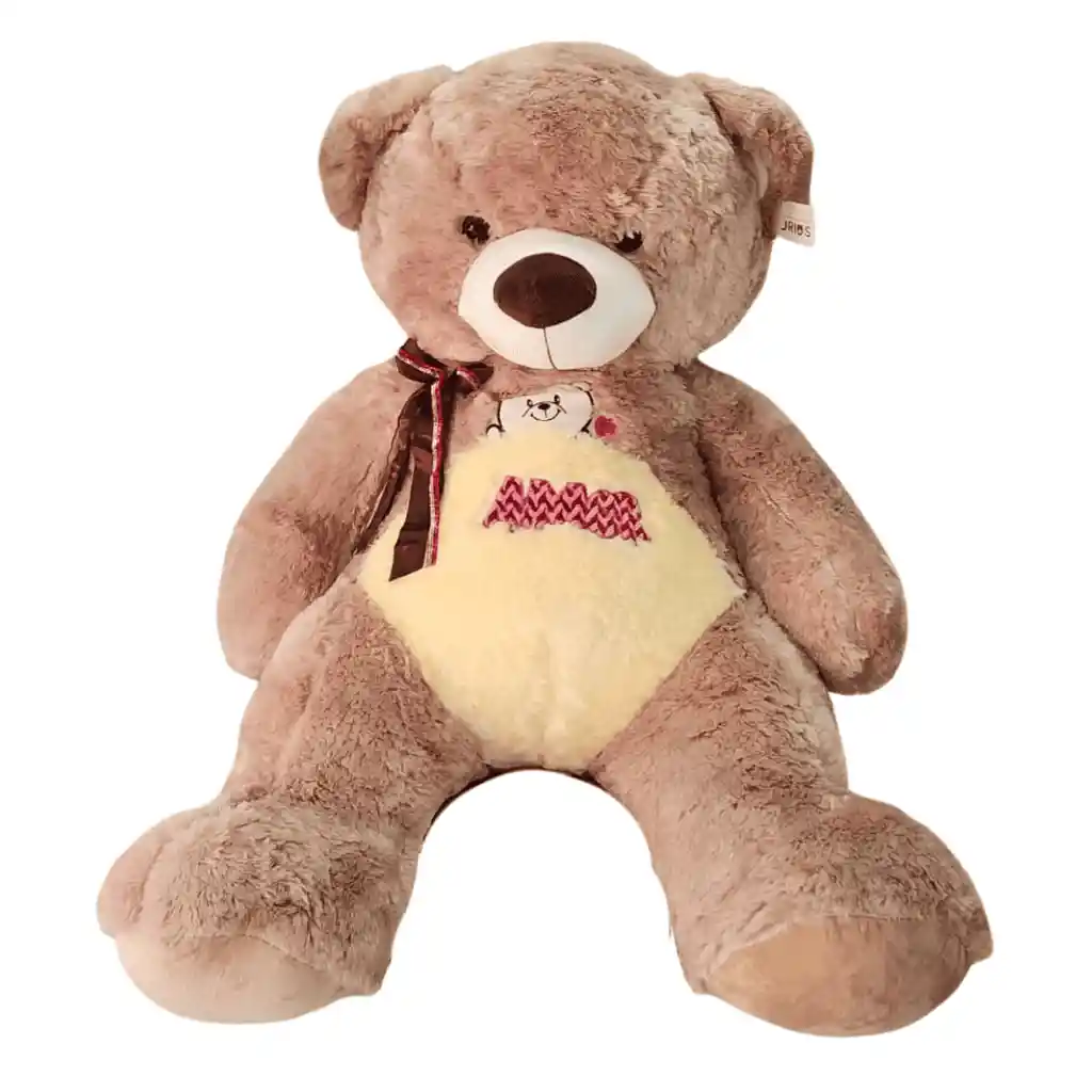 Hermoso oso de peluche grande color café con moño decorativo y bordado. Mide 1.20 aproximadamente. Perfecto para toda ocasión.