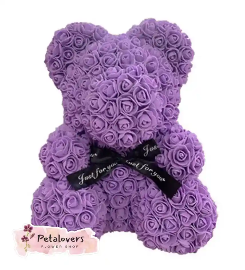 Imponente y lleno de elegancia, este hermoso oso eterno morado de 40 cm es el detalle perfecto para sorprender...Ver más