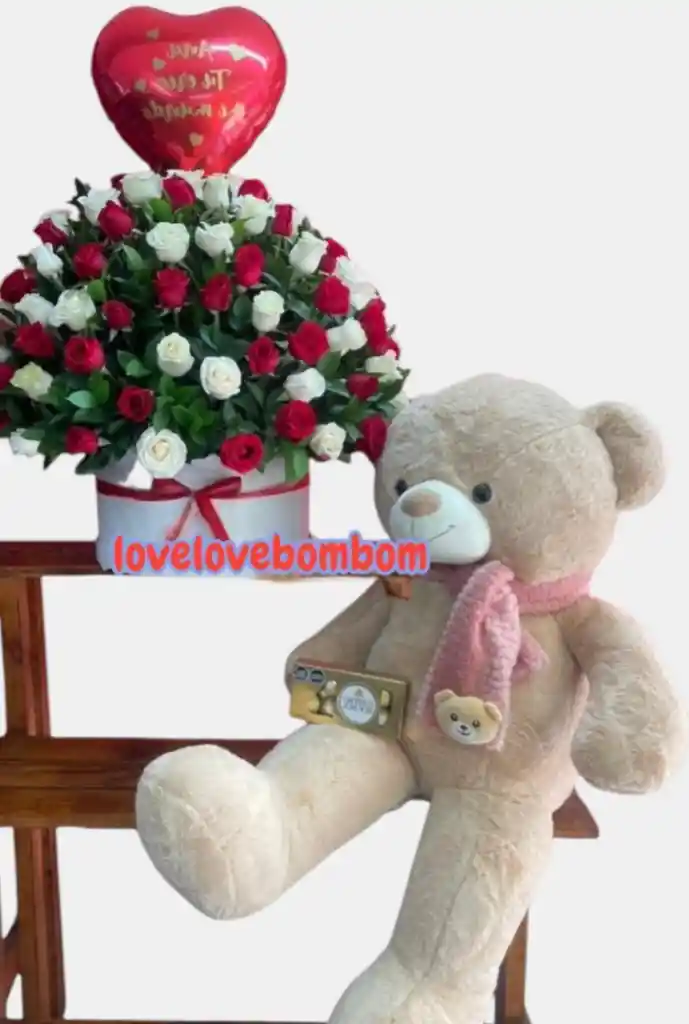 OSO SAN VALENTIN CAJA DE ROSAS X 6O CHOCOLATE FERRERO X8