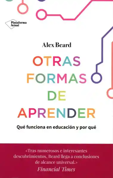 OTRAS FORMAS DE APRENDER. Nuestra educación permite vaticinar nuestro grado de aprendizaje y satisfacción en el futuro, e incluso cuánto tiempo viviremos. Sin embargo, pese a su extraordinaria importancia, la enseñanza y el aprendizaje han perdido el contacto con el progreso humano. Vivimos en la era de la información, trabajamos en la economía del conocimiento, pero nuestras escuelas son reliquias de la era industrial.En Otras formas de aprender, Alex Beard, conocedor del mundo de la educación, nos guía en un recorrido deslumbrante por el futuro de la enseñanza y el aprendizaje, para mostrarnos cómo y por qué debemos hacer mejor las cosas. Abordando todos los temas, desde la inteligencia artificial hasta nuestra comprensión creciente del cerebro del niño, desde las raíces de la creatividad hasta la forma en la que las aulas pueden ser motores involuntarios del extremismo, Beard nos conduce de los pasillos abarrotados de una escuela integrada de Londres a los pabellones de alta tecnología de Silicon Valley, pasando por las fábricas de exámenes de Corea del Sur y las aulas inclusivas de Finlandia, para revelarnos que nos hallamos en el umbral de una revolución del aprendizaje.