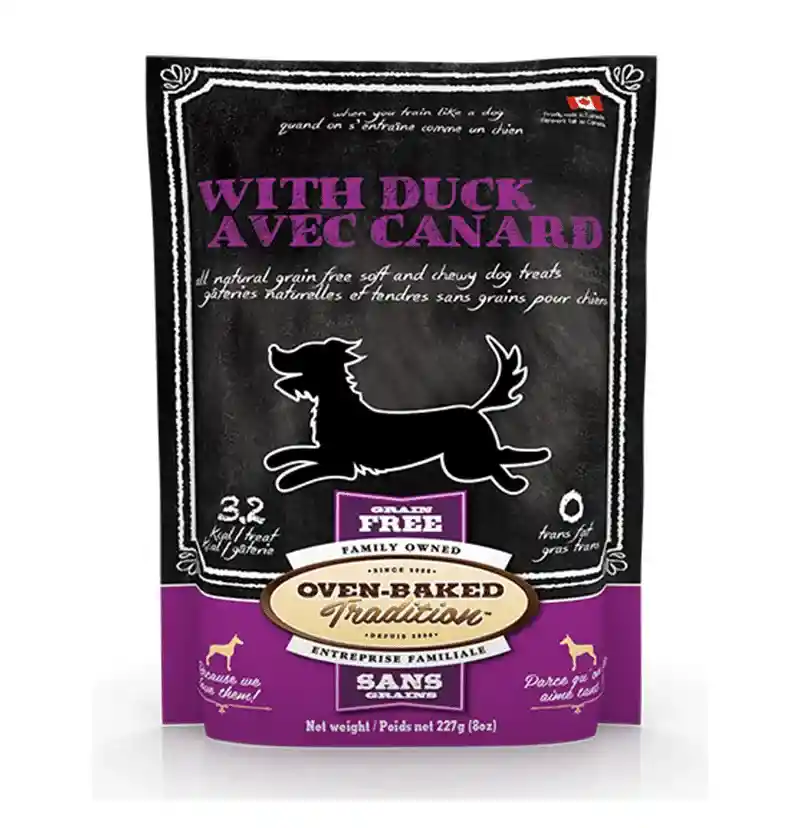 Oven-Baked Treats Pato son premios masticables para perros perfectos como recompensas en las sesiones de entrenamiento. Libres de grano y formulados con pato. Con solo 3.2kcal, son premios bajos en grasa. Oven-Baked Treats Pato no contienen grasas trans para una mejor salud de su mascota.