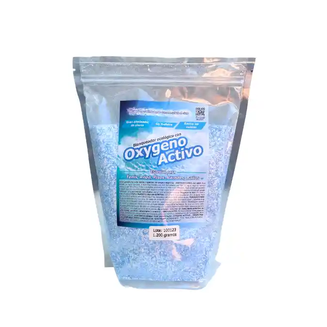 Poderoso quitamanchas en polvo biodegradable a base de oxygeno activo. Su principal función es blanqueo intenso y retirar manchas de origen orgánico como sangre, salsas, bebidas oscuras, sudor y desodorante. Puede ser usado en tenis, toallas, sanitario y lavamanos por su acción desinfectante y eliminadora de olores.