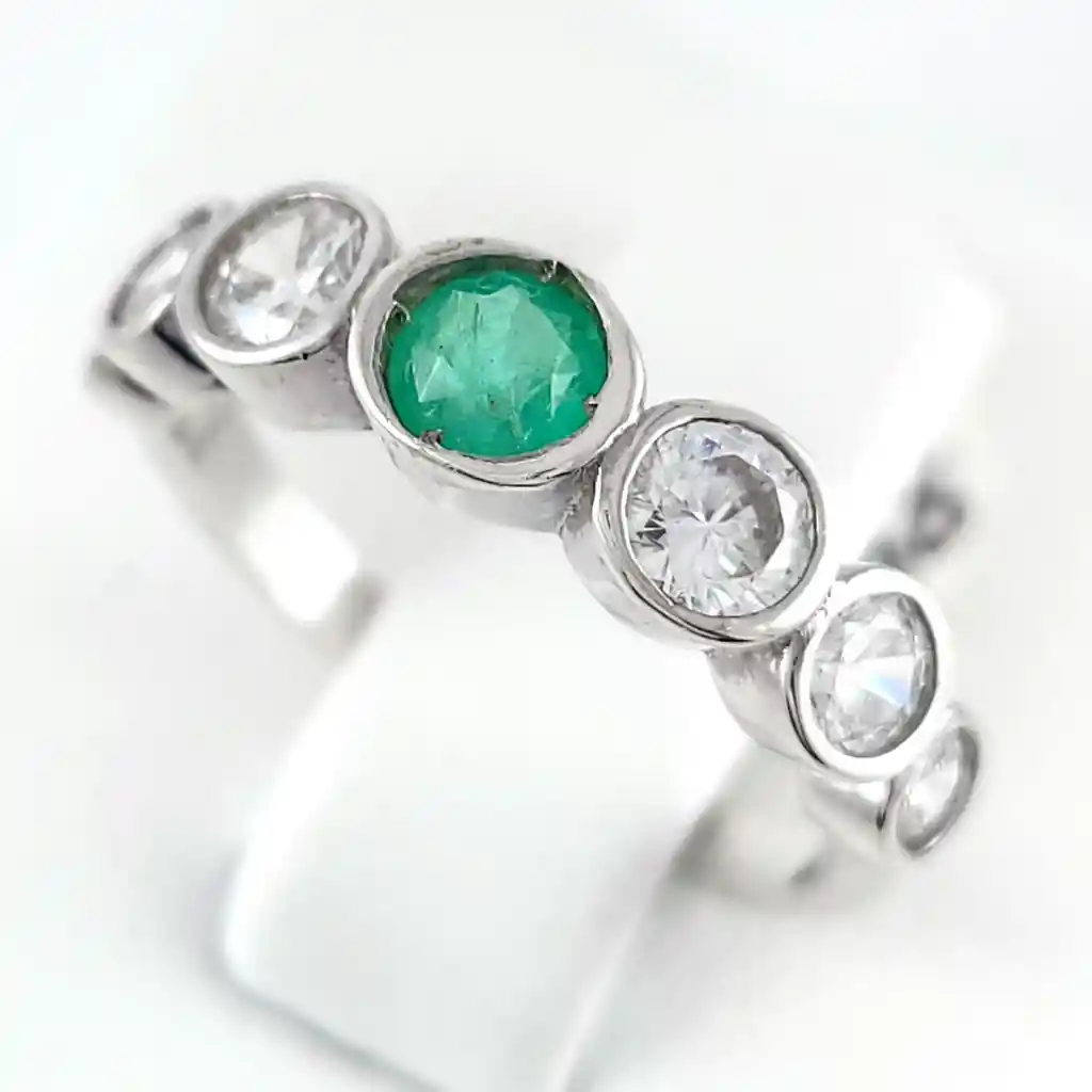 Anillo de plata sólida con esmeralda natural Colombiana garantizado, peso total de la o las esmeraldas 0.38kt