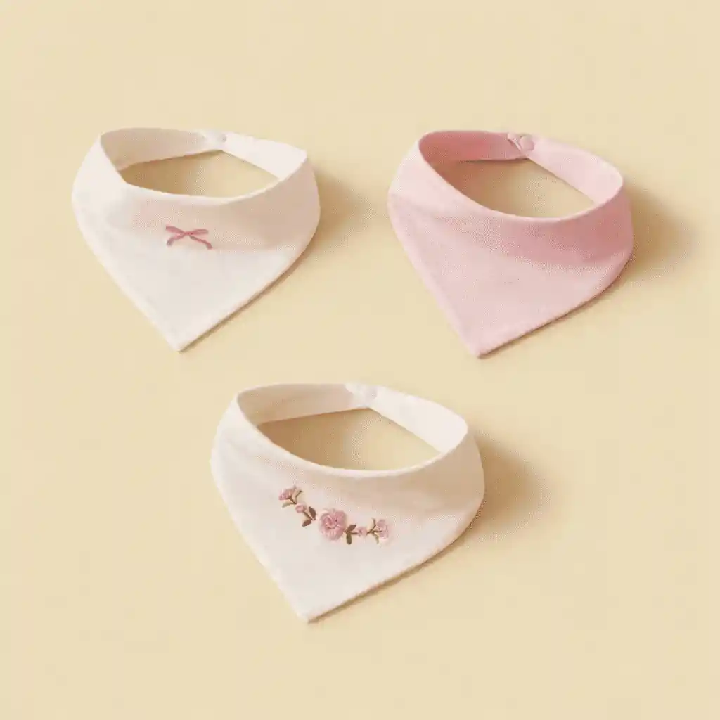 Baberos para bebé, elaborados en algodón muselina, suaves, transpirables y altamente absorbentes, ideales para proteger la ropa durante la alimentación y la dentición. Cuentan con diseño triangular y delicados tejidos, pensados para brindar comodidad y estilo al mismo tiempo. Su textura ligera cuida la piel sensible del bebé y permite un uso diario confortable.