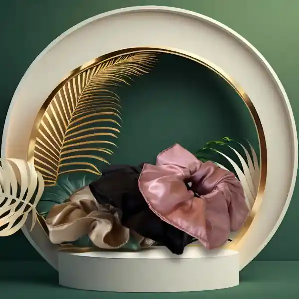 Pack de 3 Scrunchies en Satén talla M, ideales para cuidar tu cabello, no lo marcan, maltratan, quiebran o rompen, además no generan frizz.
