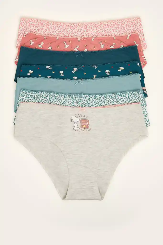 Hazte con el pack de 7 braguitas clásicas perfecto para tu día a día, en tonos verdes. Cómodo y súper práctico: una braguita para cada día de la semana. Pack 7 braguitas clásicas de algodón. No se admiten cambios ni devoluciones.