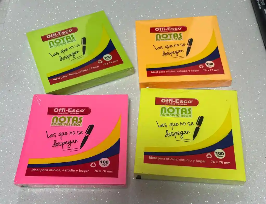 ¡Las notas que no se despegan! 📝✨ En IMPREKOLOR SAS te traemos las notas adhesivas Offi-Esco en colores neón vibrantes. Son perfectas para dejar recordatorios, organizar tus estudios o complementar tus cuadernos personalizados sin miedo a que se caigan. ✨Contenido: 100 hojas de alta adherencia. ✨Tamaño: 76 x 76mm (Cuadradas estándar). ✨Colores Neón: Amarillo, Rosado, Verde y Naranja de alta visibilidad. ✨Uso Versátil: Ideal para oficina, estudio y hogar. ⚡ ¡ORDENA YA!: Lleva el pack de 4 colores surtidos para superar el mínimo de compra y recibir tu pedido hoy mismo. 📲 315 388 0960