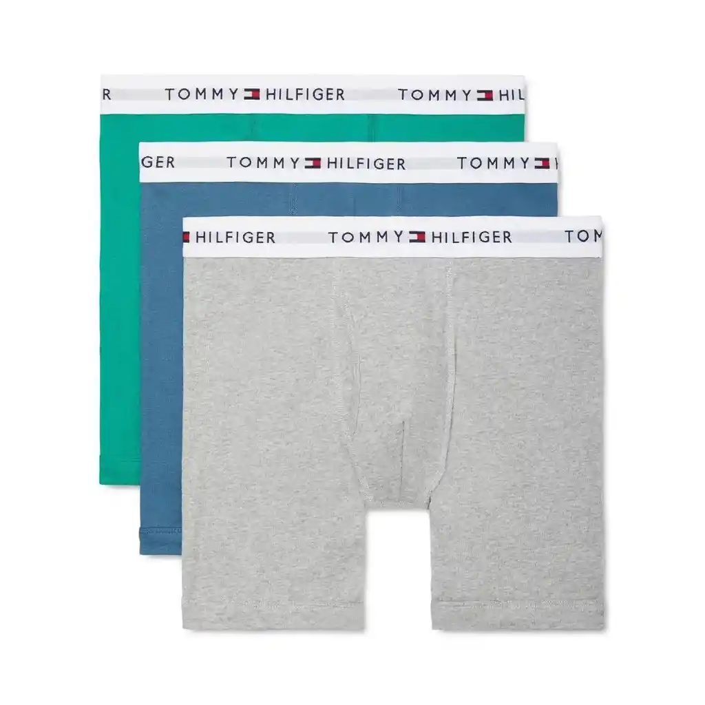 3 Pack Bóxer Hombre Tommy Hilfiger Classic Cotton Boxer Briefs | Original. 3 calzoncillos tipo bóxer con cintura elástica expuesta con logotipo de Tommy Hilfiger repetido, bolsa de contorno de dos capas, cuerpo de punto acanalado, entrepierna reforzada sin costuras, parte trasera sin etiquetas. Características de 3 Pack Bóxer Hombre Tommy Hilfiger Classic Cotton Boxer Briefs | Original: El bóxer elástico de algodón Tommy Hilfiger viene en un práctico paquete de 3 para abastecerse de ropa interior clásica diaria con facilidad. La entrepierna reforzada de algodón mejora el ajuste y proporciona una experiencia sin rozaduras. Cintura elástica con logo de Tommy Hilfiger El algodón supersuave se mueve contigo mientras que una bolsa de contorno te ayuda a mantenerte centrado y apoyado. Materiales y cuidados de 3 Pack Bóxer Hombre Tommy Hilfiger Classic Cotton Boxer Briefs | Original: 95% algodón, 5% elastano. Lavado en máquina. Importado Indícanos por favor por el chat de soporte la talla que deseas. Productos de ropa interior al ser íntimos no cuentan con cambio o devolución.