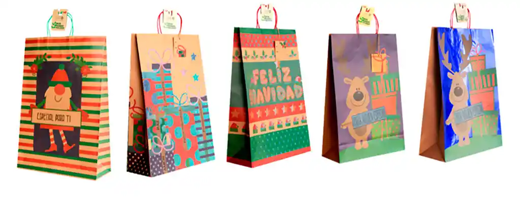 Medidas: 34 de ancho x 51 de alto x 13,5 fuelle cm ACABADOS: escarchado, metalizado o brillante Tarjeta de para