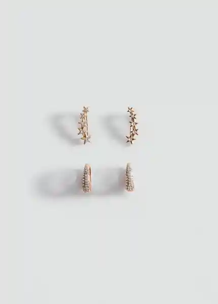Pack Contiene 2 Pares. Adorno de Piedras Diseño Brillante Diseño de Aro Diseño de Estrellas - 27031217_Or.