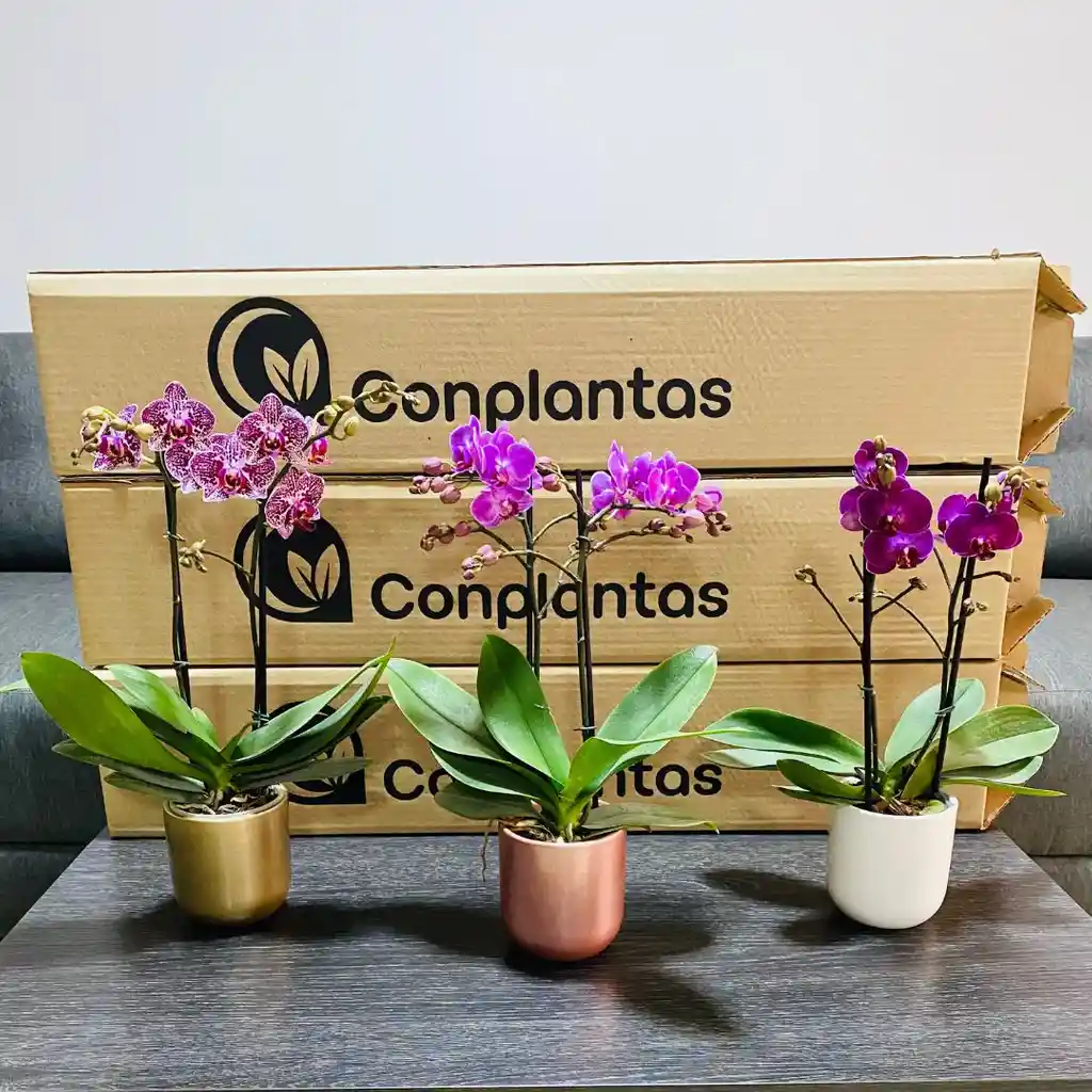 Conmemora las ocasiones mas especiales con nuestro encantador pack x3 Orquídea Phalaenopsis medianas en colores surtidos de dos varas florales. Esta joya de la naturaleza, que se alza con una altura de 35 a 40 cm, es el testimonio de que la perfección existe y puede embellecer con su magnificencia cualquier rincón. Nuestras orquídeas Phalaenopsis, vivas y radiantes, son cultivadas con sumo esmero para ofrecerte una calidad insuperable. La duración de su floración, de 3 a 5 meses, es un viaje visual que comienza con tonos vibrantes y se suaviza con el tiempo, haciendo de cada día una nueva experiencia de apreciación. Nota Importante: Cada Orquídea Phalaenopsis es única y ha sido cuidadosamente atendida, por lo que puede haber variaciones naturales en color y tamaño. Las imágenes son una guía fiel de su calidad y estilo; sin embargo, cada planta es un ser vivo y puede diferir ligeramente. Al comprar, aceptas estas variaciones que destacan la belleza y singularidad de nuestras orquídeas.